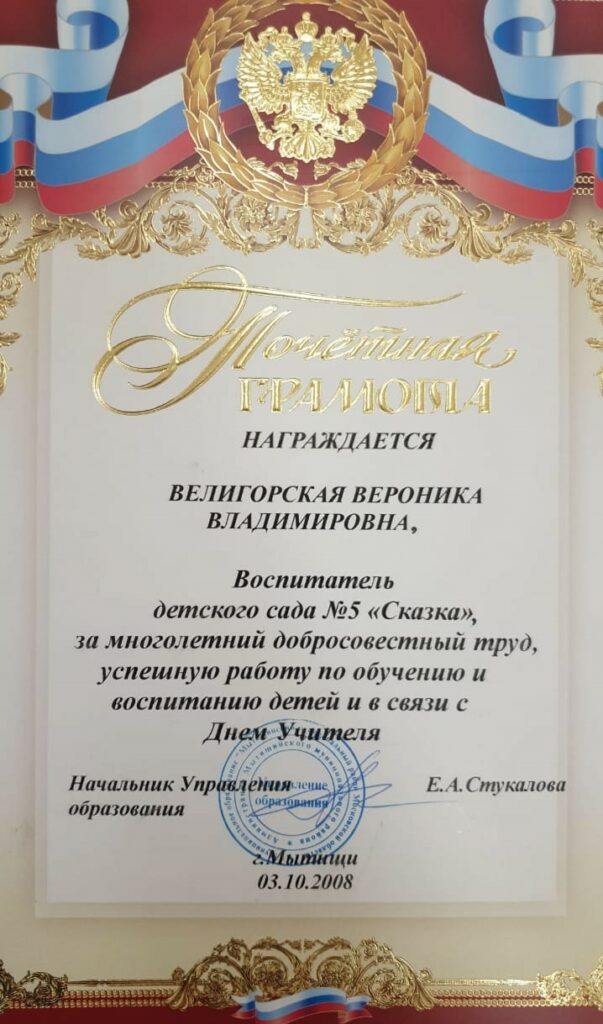 Стаж работы в ДО “Каруселька”: 8 лет.
