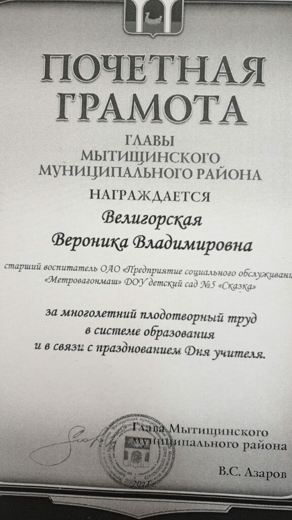 Стаж работы в ДО “Каруселька”: 6 лет.