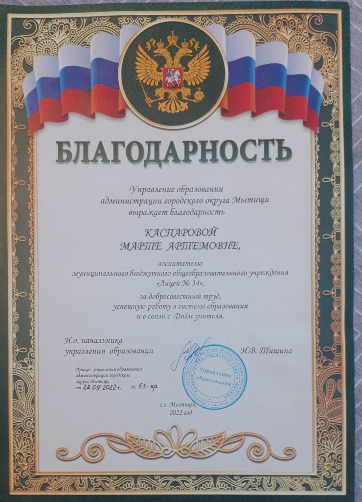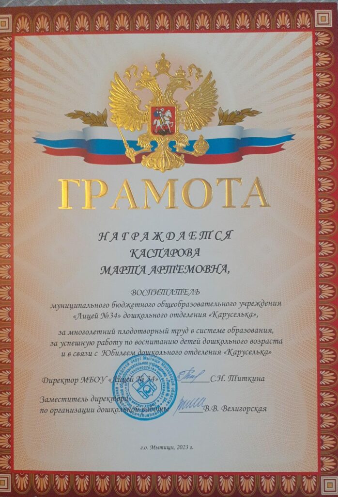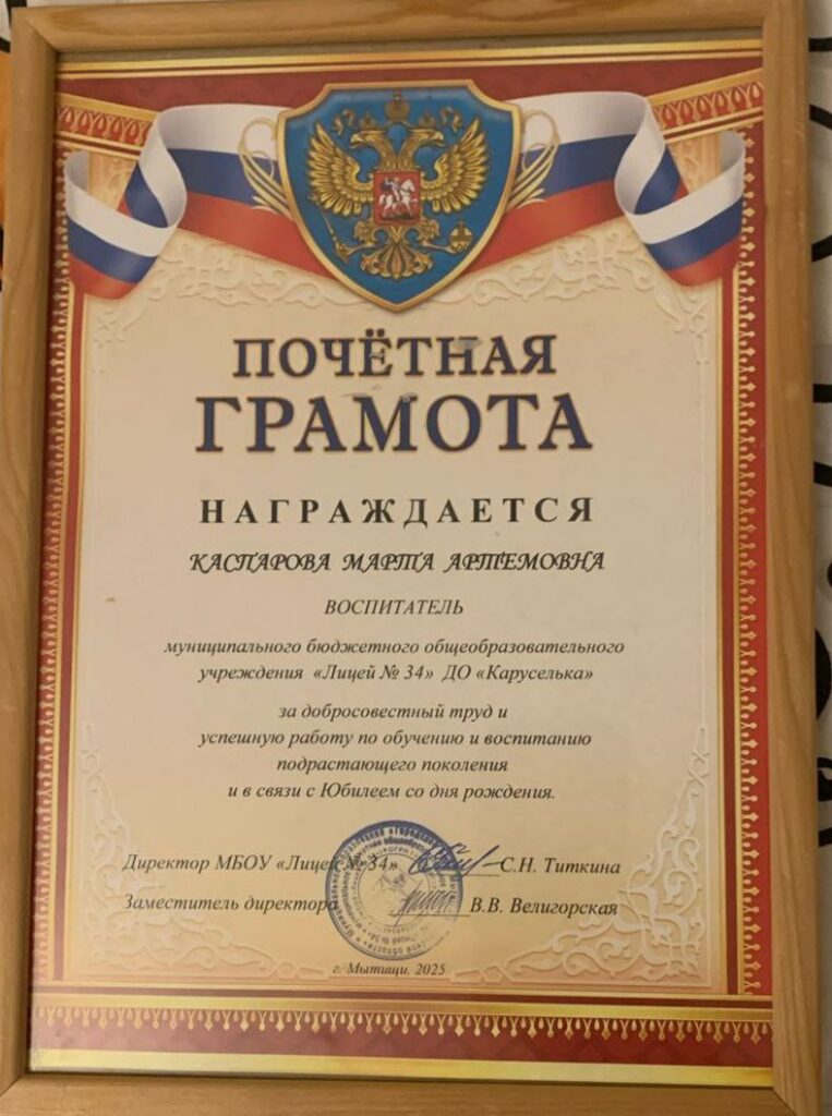 Стаж работы в ДО “Каруселька”: 6 лет.