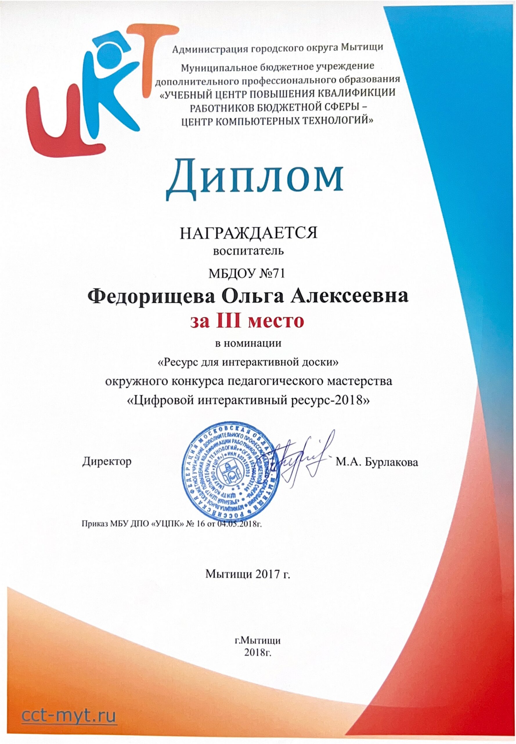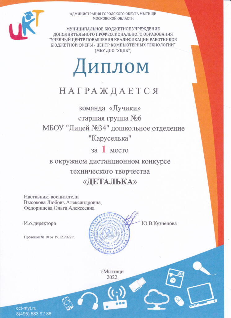 4. Курс “«Использование интернет-технологий в профессиональной деятельности педагога», (МБУ ДПО «Учебно-методического центра работников образования» городского округа Мытищи).